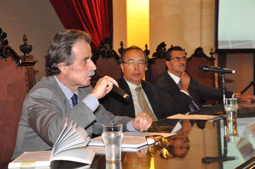 O Presidente do Tribunal de Contas do Estado de São Paulo, Conselheiro Renato Martins Costa, encerrou o primeiro dia de palestras do Fórum Brasileiro de Direito Financeiro, no Salão Nobre da Faculdade de Direito da USP. O encontro é idealizado pelo jurista Dr. Régis Fernandes de Oliveira, Professor Titular de Direito Financeiro daquela Faculdade. A Mesa dos trabalhos foi presidida pelo Procurador Geral do Estado, Dr. Elival da Silva Ramos e o tema da palestra foi "O papel do Tribunal de Contas na Democracia". Na plateia, o Conselheiro Caldas Furtado do TCE do Maranhão, o Auditor Licurgo Mourão do TCE de Minas Gerais, funcionários do TCESP além de professores e estudiosos do assunto.