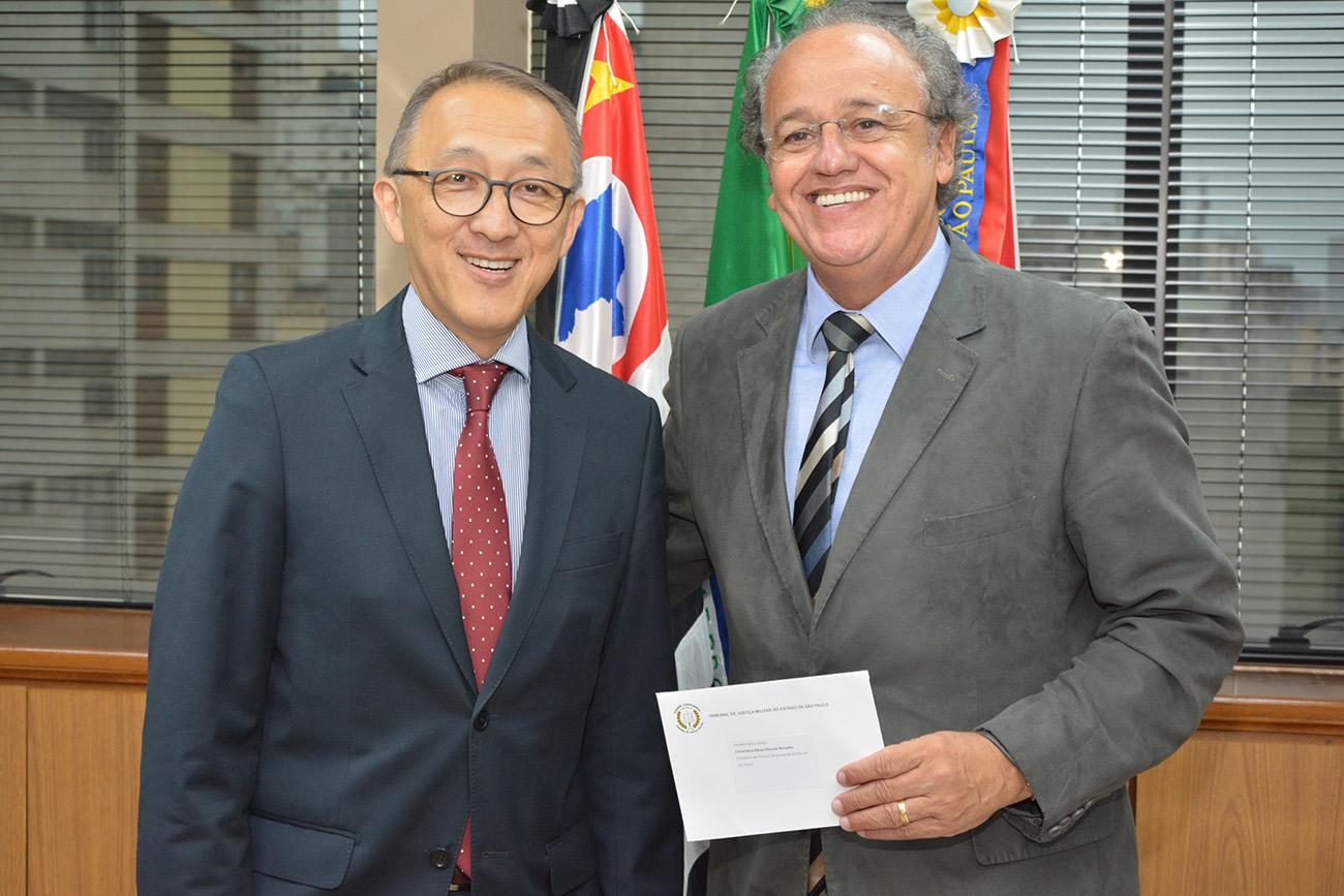 O Juiz-Presidente do TJM-SP aproveitou a ocasião para convidar o Presidente e Conselheiros para participarem, no próximo dia 26 de fevereiro, às 10h00, na sede do órgão, da posse solene do novo Corpo Diretivo para conduzir as atividades do órgão no biênio 2016/2017. Eleito em 10 de novembro de 2015, Silvio Hiroshi Oyama terá como Vice-Presidente o Juiz Clóvis Santinon e como Corregedor-Geral, o Juiz Orlando Eduardo Geraldi.