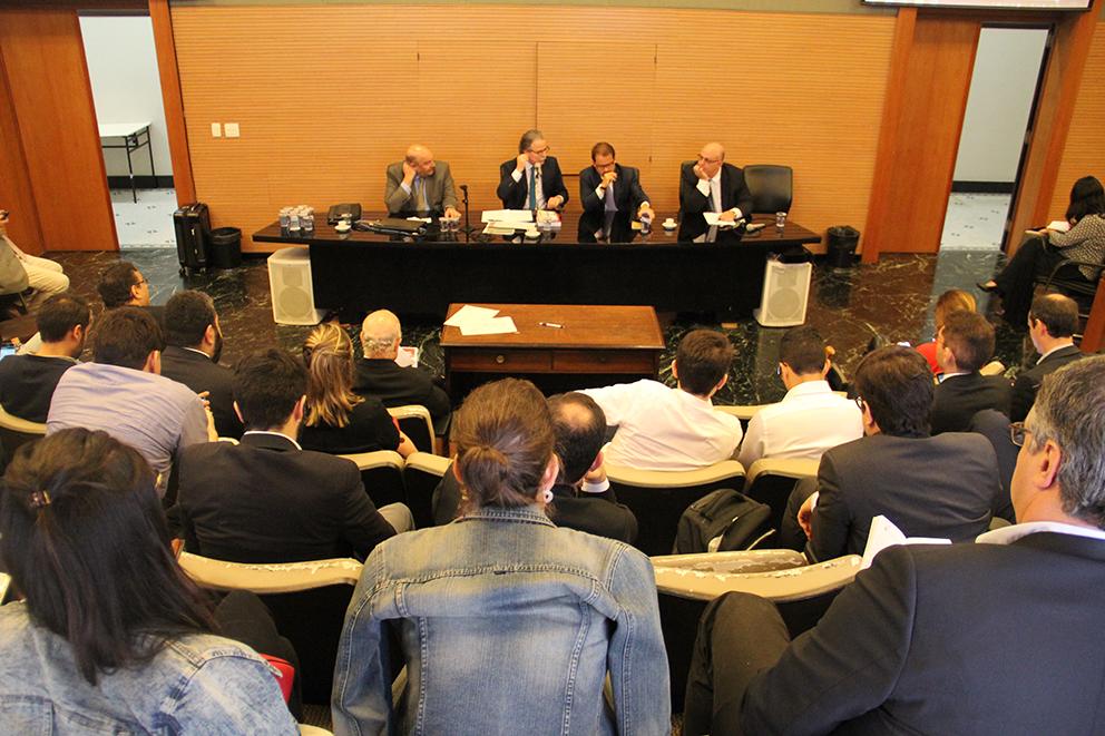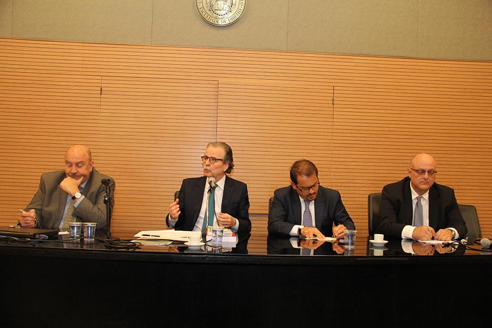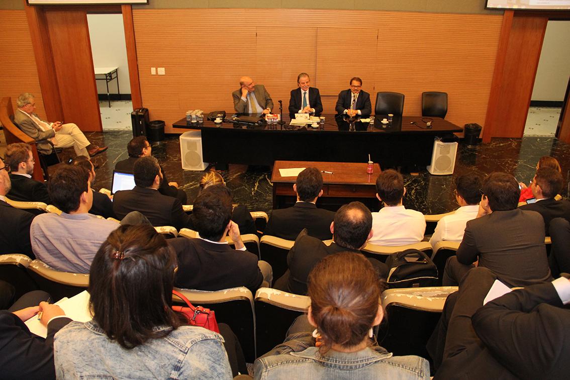 A mesa de trabalhos teve como palestrantes, além do Conselheiro-Presidente do TCE, o Professor da Universidade Federal do Rio de Janeiro (UFRJ), Alexandre Santos Aragão, e o Professor Doutor Titular de Direito da USP, Fernando Facury Scaff. Os debates foram mediados pelo Diretor e Professor Doutor Titular da Faculdade de Direito da Universidade de São Paulo, Floriano de Azevedo Marques Neto.