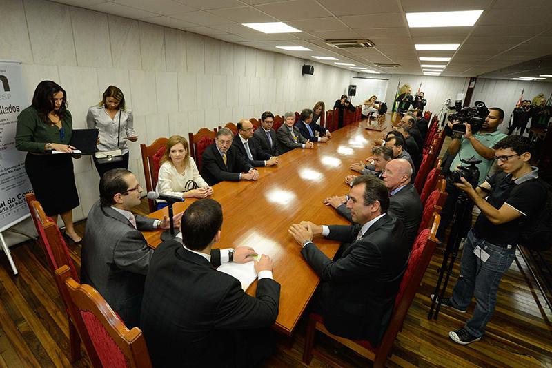 A cerimônia, ocorrida às 10h00 no Salão dos Líderes, foi conduzida pelo Presidente da Alesp, Deputado Fernando Capez e pelo 2º Secretário, Deputado Edmir Chedid e contou com a presença do Procurador-Geral do Ministério Público do Estado de São Paulo (MP-SP), Marcio Elias Rosa; do Presidente da Aprecesp, André Eduardo Bozola, além dos lideres partidários e deputados do Legislativo Estadual.´