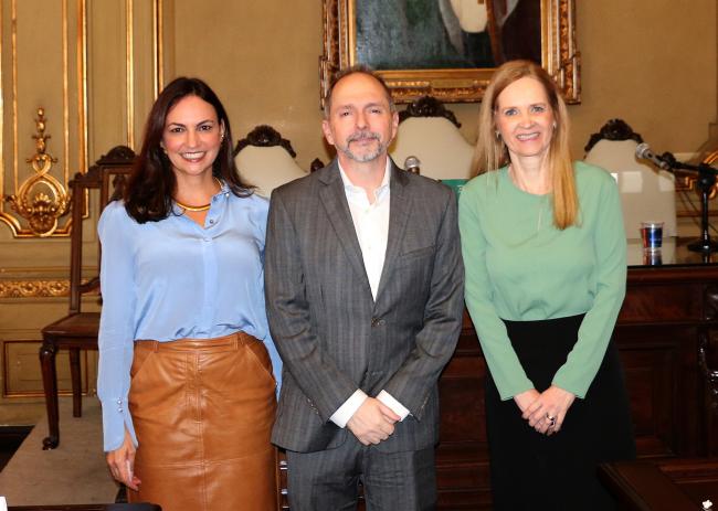 16/10/2025 - SÃO PAULO - A Presidente do Tribunal de Contas do Estado de São Paulo (TCESP), Conselheira Cristiana de Castro Moraes, participou, na manhã desta quinta-feira (16/10), de palestra proferida pela Ministra do Supremo Tribunal Federal (STF), Cármen Lúcia, na Faculdade de Direito da Universidade de São Paulo. Também estiveram presentes a Procuradora-Geral do Ministério Público de Contas do Estado de São Paulo (MPC), Letícia Formoso Delsin Matuck Feres, e o Coordenador do Corpo de Conselheiros Substituto-Auditores do TCESP, Alexandre Manir Figueiredo Sarquis.
