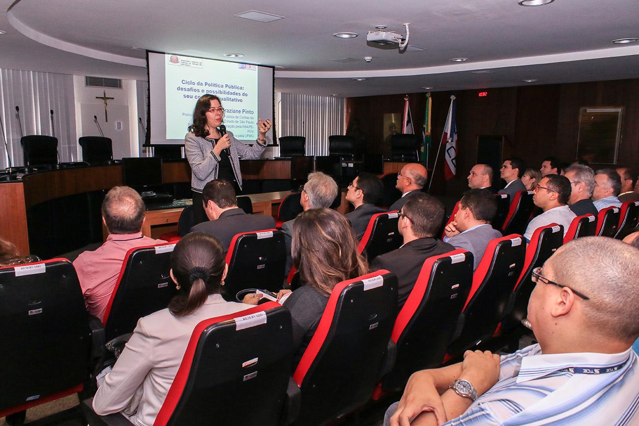 Em sua exposição, a Procuradora falou sobre avaliação de programas, mensuração de resultados em face dos seus custos, contrastando o planejado em face do realizado, o que, para ela, permite maior transparência, eficiência e efetividade no trato dos recursos públicos. Élida Graziane disse ainda que é fundamental a integração entre as instâncias de controle.