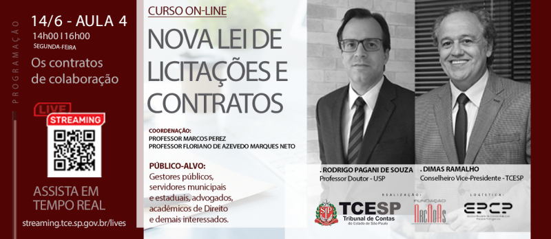 A capacitação é direcionada a gestores públicos, servidores municipais e estaduais, advogados, acadêmicos de Direito e demais interessados no tema, e terá transmissão em tempo real pelo canal da Escola Paulista de Contas Públicas (EPCP) no YouTube e pelo link streaming.tce.sp.gov.br/lives.