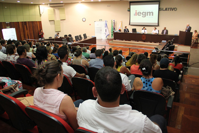 16/01/15 – ITAPEVA – Cerca de 200 representantes de 45 (quarenta e cinco) municípios jurisdicionados do Tribunal de Contas do Estado de São Paulo (TCESP) participaram na quinta-feira (15/1), às 14h00, na Câmara Municipal de Itapeva, da palestra ‘Aspectos Operacionais do IEGM’, que teve como propósito informar e esclarecer dúvidas sobre a adoção do Índice de Efetividade da Gestão Municipal (IEGM). Os trabalhos foram coordenados pelo Conselheiro Sidney Estanislau Beraldo e pela equipe técnica da Divisão Audesp.