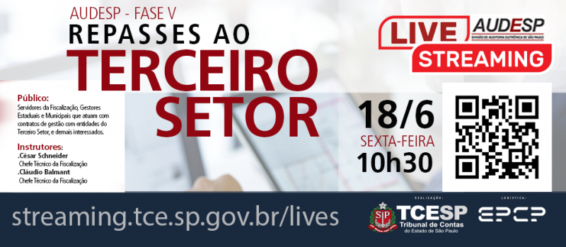 A capacitação é direcionada a gestores públicos, servidores municipais e estaduais, e terá transmissão em tempo real pelo canal da Escola Paulista de Contas Públicas (EPCP) no YouTube e pelo link streaming.tce.sp.gov.br/lives.