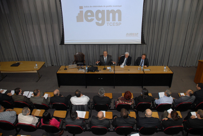 Durante a reunião foram apresentados os resultados preliminares do IEGM, que contou com a adesão de 100% dos municípios paulistas. Os dados, colhidos por meio de questionário elaborado pelo TCE, foram checados pelas equipes das Diretorias de Fiscalização e pelas Unidades Regionais no Estado. No segundo semestre de 2015 o TCE produzirá 3 (três) tipos de relatórios destinados ao setor de fiscalização, aos Conselheiros-Relatores, e outro disponibilizado para o acesso público.