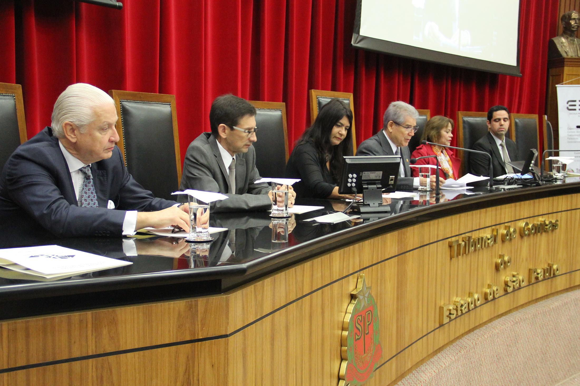 Integraram a mesa solene, ao lado do Presidente do TCE, a Conselheira do Tribunal de Contas do Estado do Ceará (TCE-CE), Patrícia Lúcia Saboya Ferreira Gomes; a Auditora-Substituta de Conselheiro, Silvia Monteiro; o Procurador-Geral do Ministério Público de Contas (MPC), Thiago Pinheiro; o Secretário de Controle Externo do Tribunal de Contas da União (TCU) em São Paulo, Hamilton Caputo e o Assessor Procurador-Chefe do Gabinete Técnico da Presidência (GTP), Mauricio Antonio Varnieri.