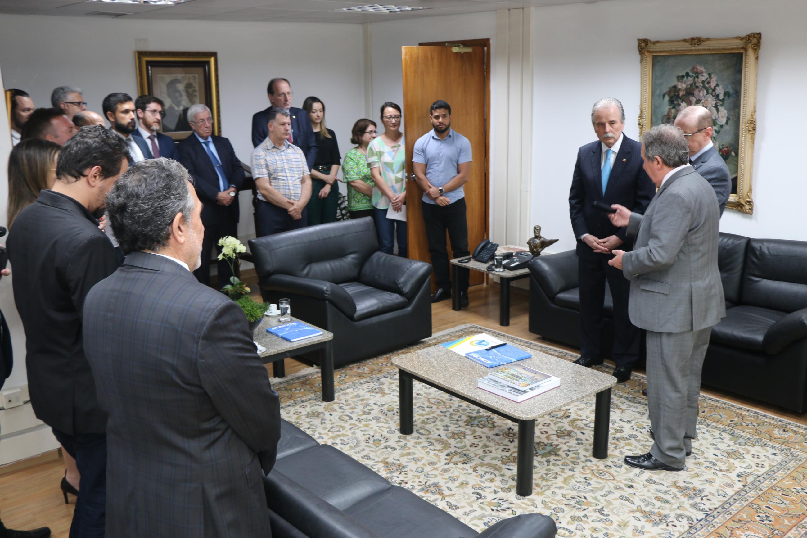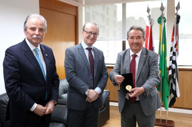 A entrega da honraria ocorreu na Presidência do TCESP, às 16h00, e foi entregue pelo Vice-Presidente de Relações Político-Institucionais da Atricon, Conselheiro Cezar Miola (TCE-RS). A solenidade, com a presença do Presidente do TCE, Renato Martins Costa, contou com a presença de Diretores e representantes de setores do órgão.