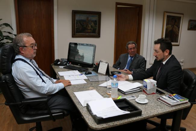 O dirigente do SINPCRESP foi recepcionado pelo Conselheiro-Presidente, Edgard Camargo Rodrigues, e pelo Secretário-Diretor Geral, Sérgio Ciquera Rossi, no gabinete da Presidência do TCESP.