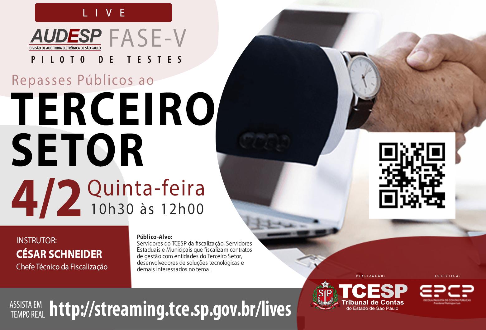 A atividade conta com apoio logístico da Escola Paulista de Contas Públicas (EPCP) e é direcionada a servidores estaduais e municipais que atuam na área de contratos de gestão com entidades do Terceiro Setor; servidores do TCE que atuam nos setores de fiscalização; desenvolvedores de soluções tecnológicas e demais interessados no tema.