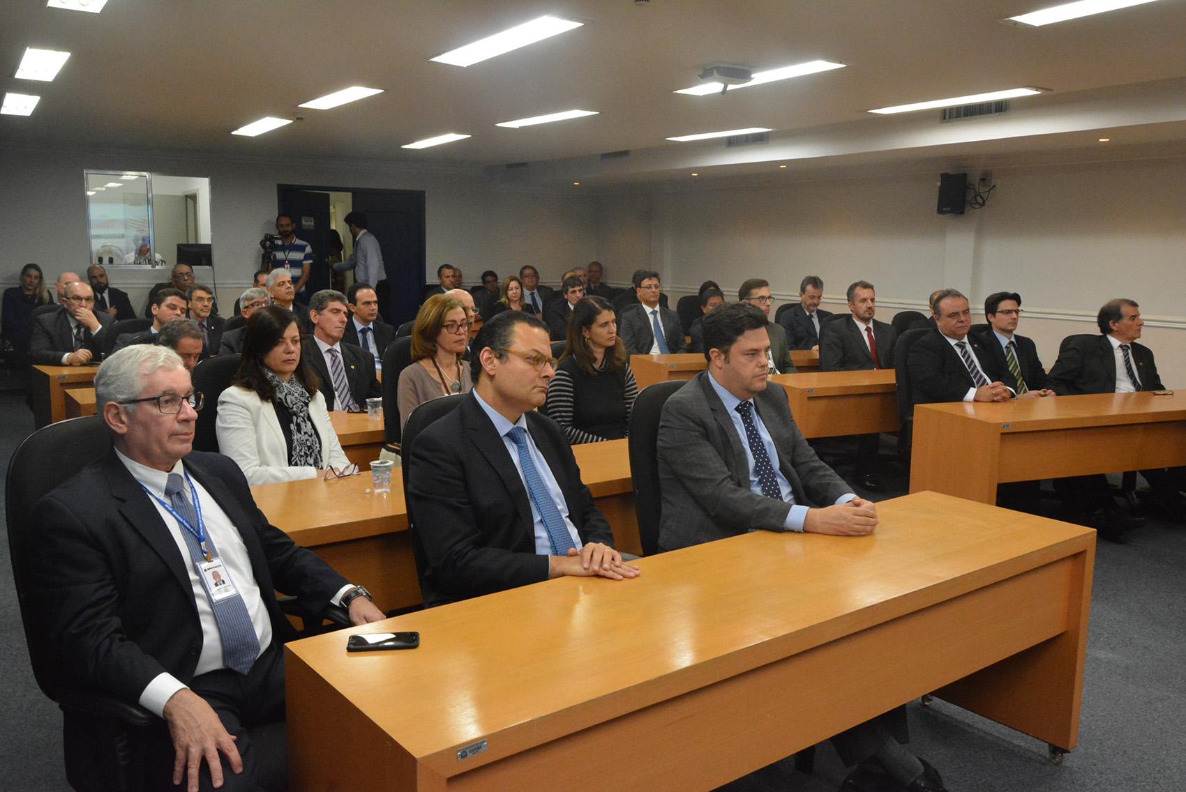 Participaram do ato o Vice-Presidente do TCESP, Antonio Roque Citadini, os Conselheiros Dimas Ramalho e Sidney Beraldo, e o Procurador-Geral do Ministério Público de Contas, Rafael Neubern Demarchi Costa.