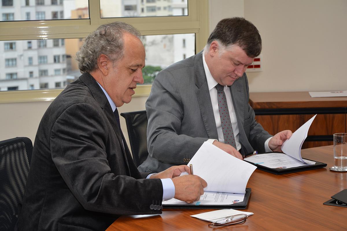 02/06/16 – SÃO PAULO – Com o objetivo de promover incentivar o intercâmbio de conhecimento técnico e administrativo, o Presidente do Tribunal de Contas do Estado de São Paulo (TCESP), Conselheiro Dimas Eduardo Ramalho, e o Presidente da Ordem dos Advogados do Brasil, seção São Paulo (OAB/SP), Marcos da Costa, assinaram, na segunda-feira (31/5), às 10h00, um termo de cooperação técnica, com vigência por período indeterminado, objetivando o intercâmbio de informações e dados entre as instituições.