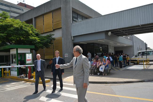 O Presidente do Tribunal de Contas, Conselheiro Dimas Eduardo Ramalho, acompanhado dos Diretores de Supervisão da Fiscalização, Alexandre Carsola e Antonio Bento de Melo, participou da fiscalização no Hospital Geral de Guarulhos, na grande São Paulo. Junto com a equipe de fiscalização e Diretores, percorreu as dependências da unidade, conversou com os usuários da rede e coletou dados de setores específicos, para posterior análise.