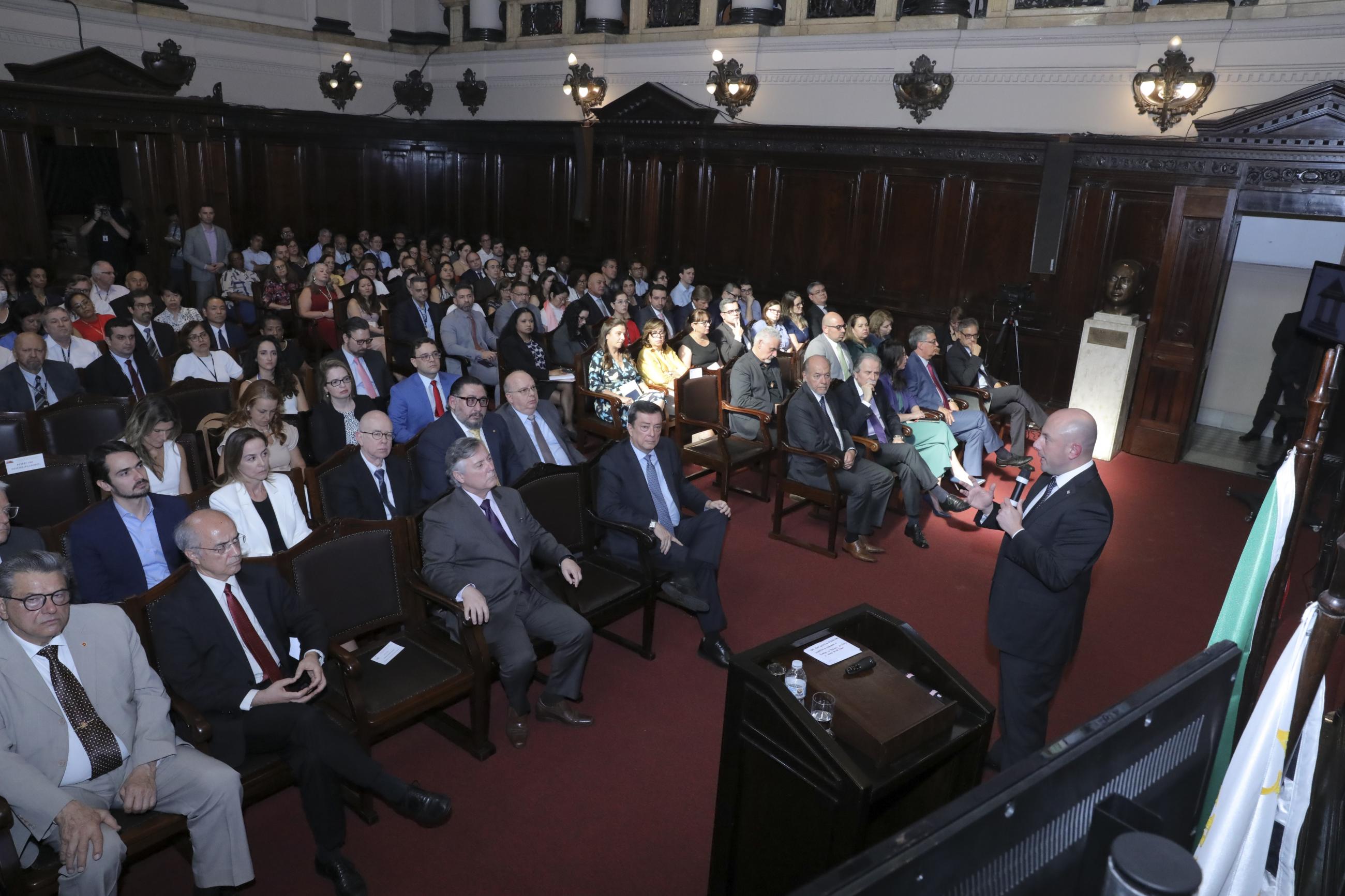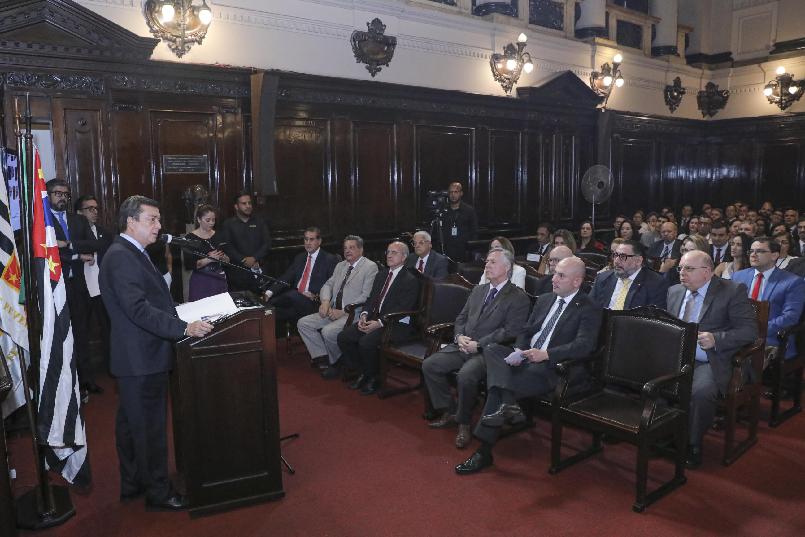 A palestra de abertura foi proferida pelo Secretário de Estado da Fazenda e Planejamento, Samuel Kinoshita, que discorreu sobre o tema ‘Orçamento Responsável e Sustentabilidade - Os Desafios na Gestão de Recursos Públicos’, na qual falou sobre a questão da tributação no Estado e a modernização da administração fazendária. Os trabalhos foram conduzidos pelo Presidente do TJSP, Desembargador Fernando Antonio Torres Garcia, que conduziu a solenidade.