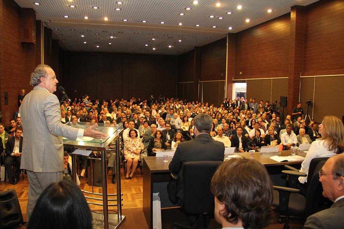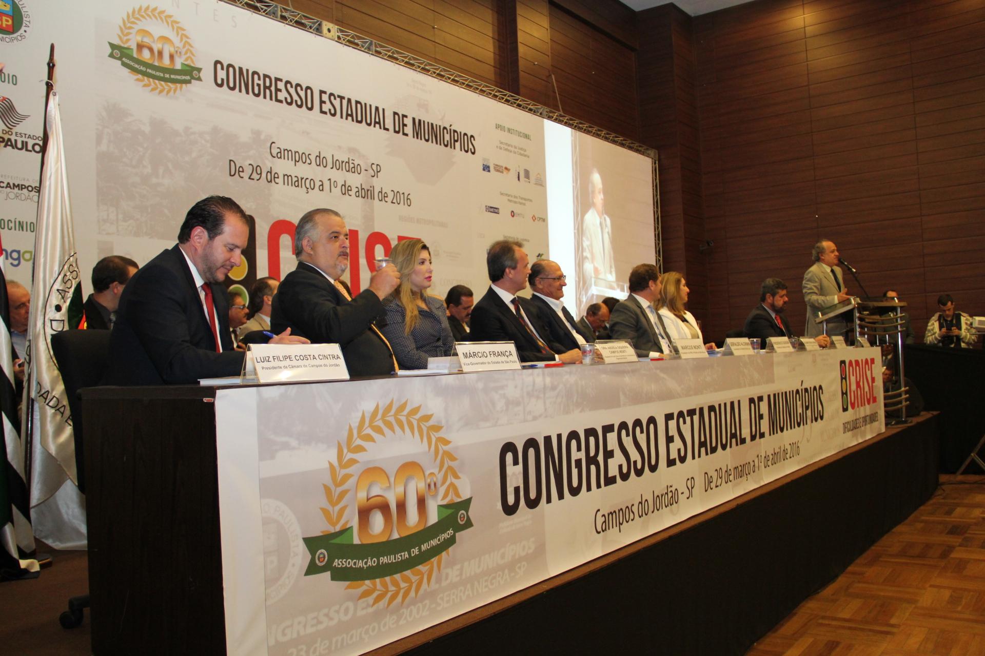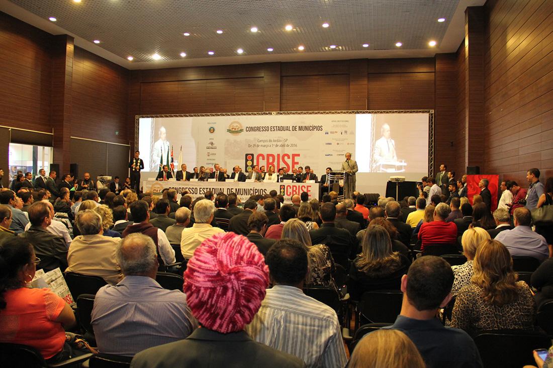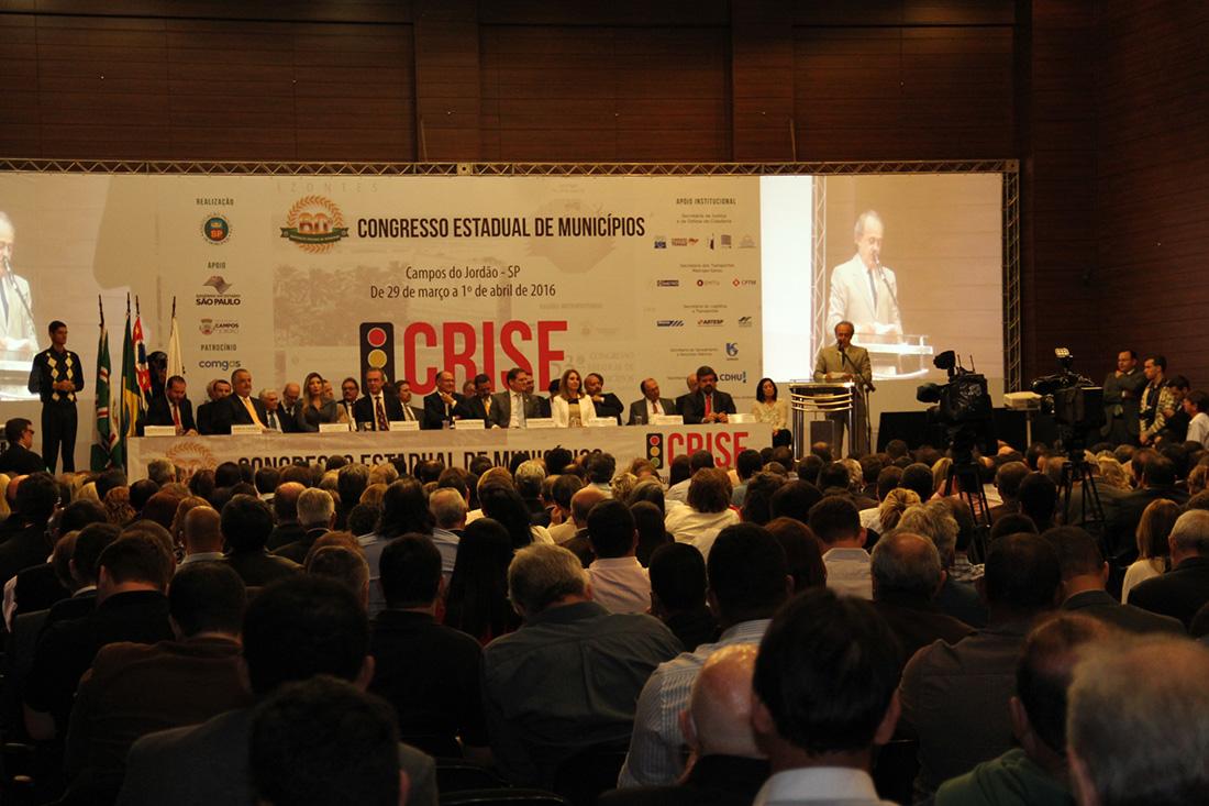 31/03/16- SÃO PAULO – O Tribunal de Contas do Estado de São Paulo (TCESP), por meio do Presidente Dimas Eduardo Ramalho, participou, na terça-feira (29/3), às 19h00, da solenidade de abertura do 60º Congresso Estadual de Munícipios. A abertura do evento, que tem como tema central a ‘Crise – Dificuldades e Oportunidades’, contou com a presença de mais de 700 (setecentos) participantes de todo o Estado que lotaram o auditório do Convention Center, em Campos do Jordão.