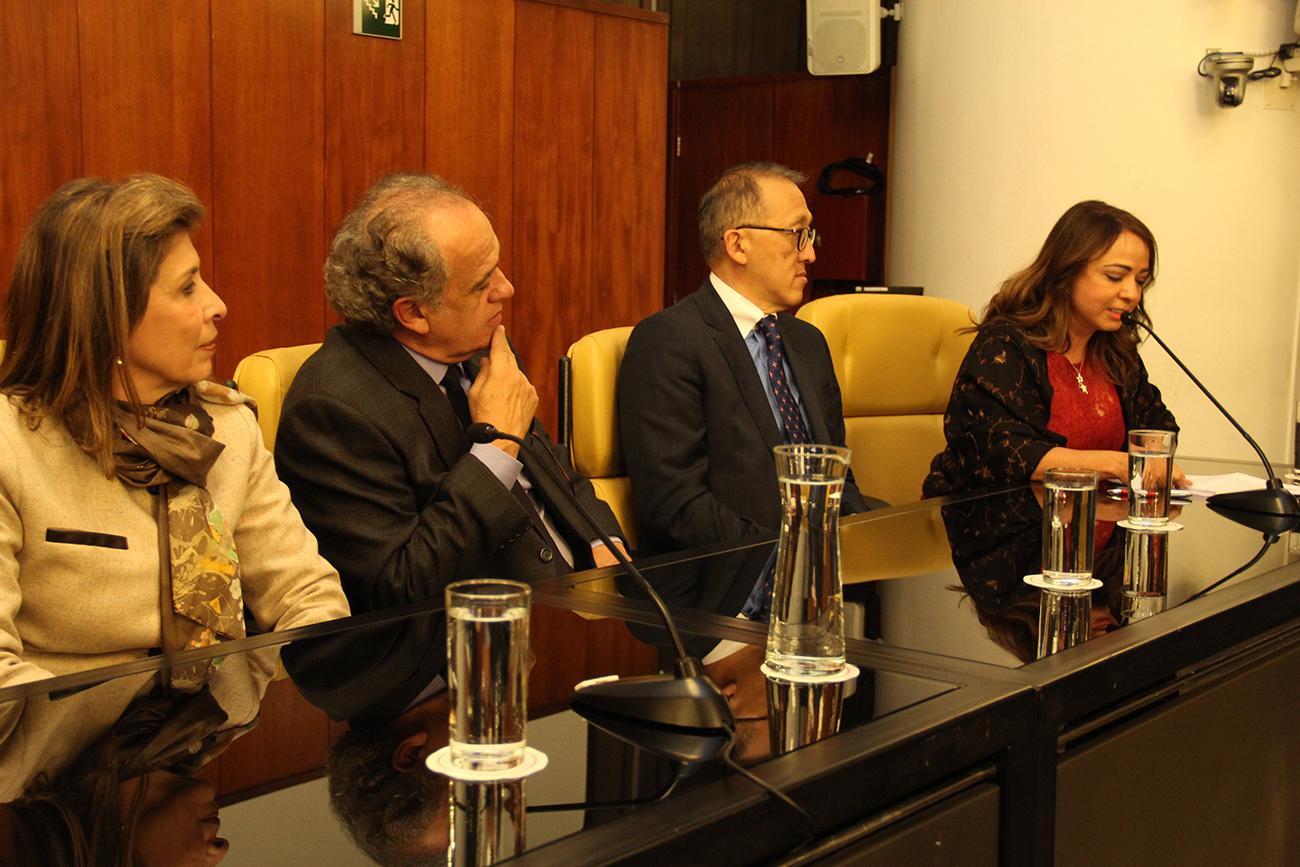 Ao lado do Presidente do TCESP e do Procurador-Geral do Ministério Público de Contas, compuseram a mesa solene estiveram presentes o Presidente da Câmara Municipal, Vereador Antônio Donato; o Procurador-Geral de Justiça, Gianpaolo Smanio; o Vice-Presidente da Assembleia Legislativa, Deputado Estadual Carlos Bezerra e a Presidente do Tribunal Regional Federal da 3ª Região, Cecília Marcondes.