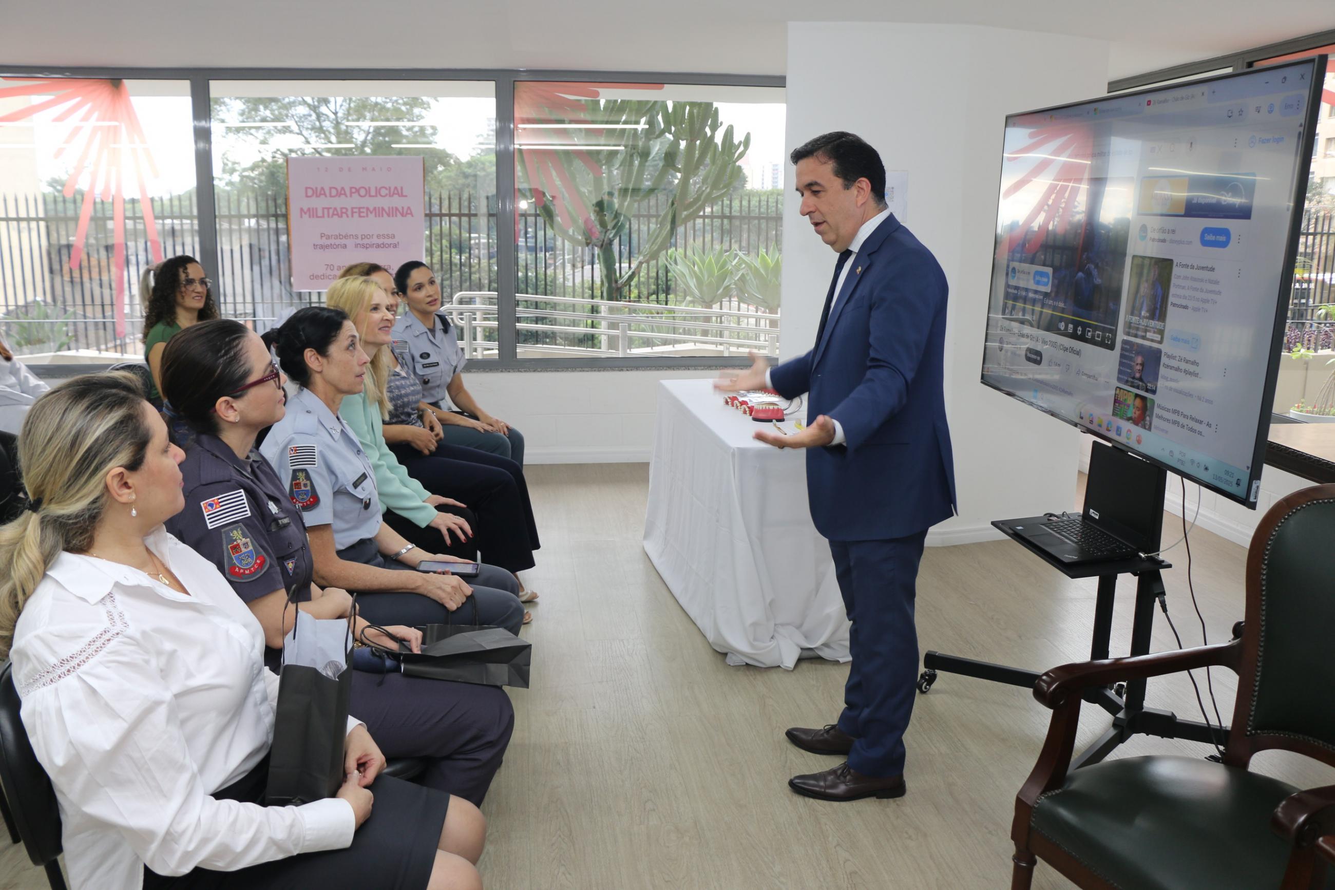 Na sequência, presente no encontro, a Conselheira Vice-Presidente do TCESP, Cristiana de Castro Moraes, discursou sobre a importância da celebração, do reconhecimento e sobre o papel das policiais na Instituição Policial Militar. Ao final, a Conselheira entregou presentes às policiais, como uma forma de reconhecimento pela data.