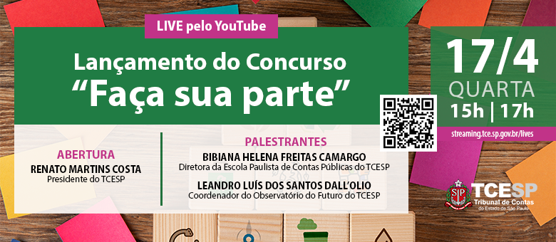 16/04/2024 – SÃO PAULO – O Tribunal de Contas do Estado de São Paulo (TCESP) promove, na quarta-feira (17/04), das 15h00 às 17h00, palestra virtual para anunciar o lançamento do Concurso ‘Faça sua parte’.