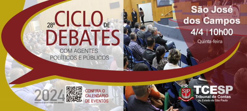 27/03/2024 – SÃO PAULO – O Tribunal de Contas do Estado de São Paulo (TCESP) realiza, na quinta-feira (4/4), às 10h00, em São José dos Campos, encontro regional como parte das atividades da 28ª edição do Ciclo de Debates com Agentes Políticos e Públicos em 2024. O encontro ocorrerá no plenário da Câmara Municipal, situado na Rua Desembargador Francisco Murilo Pinto, 33.