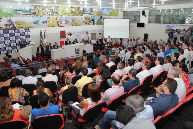 12/02/16 – ANDRADINA – Com a presença maciça e integral de todos os 21 (vinte e um) Prefeitos que integram a região jurisdicionada da Unidade Regional do Tribunal de Contas do Estado de São Paulo (TCESP) em Andradina (UR-15), o Conselheiro-Presidente Dimas Eduardo Ramalho abriu a série de 20 (vinte) encontros que integram o calendário da 20ª edição do Ciclo de Debates com Agentes Políticos e Dirigentes Municipais no ano de 2016.