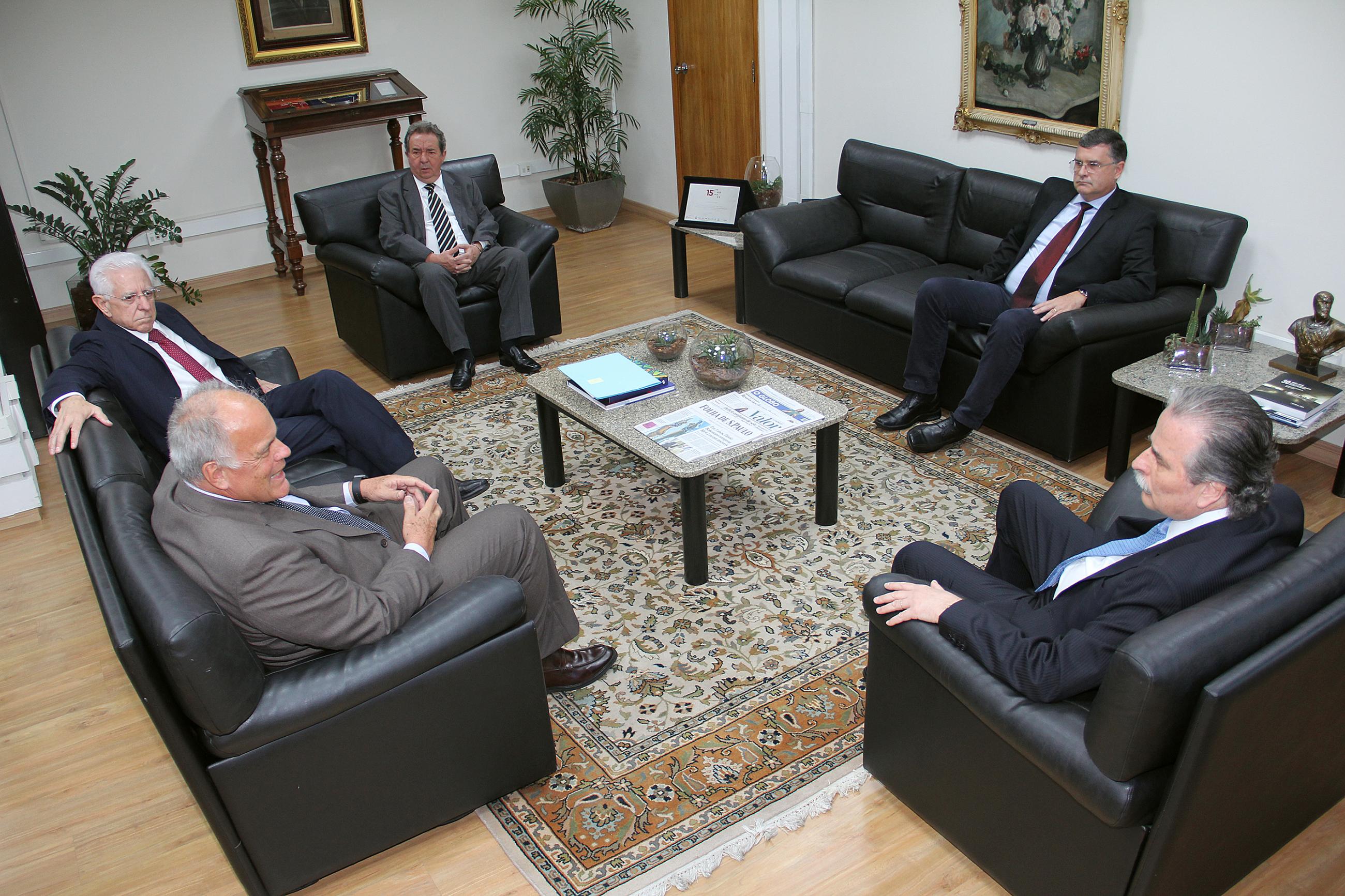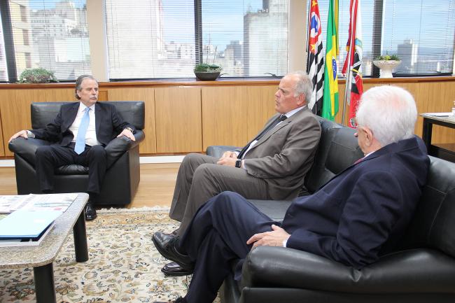 Recepcionado pelo Presidente do TCE, Conselheiro Renato Martins Costa, pelo Conselheiro Sidney Estanislau Beraldo e pelo Secretário-Diretor Geral, Sérgio Ciquera Rossi, o titular da Pasta tomou conhecimento das ações desenvolvidas pelo TCESP na área da Segurança Pública.