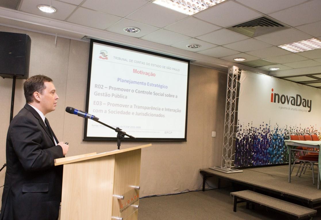 15/03/2016 – SÃO PAULO – O Tribunal de Contas do Estado de São Paulo (TCESP), por meio do Centro de Apoio Estratégico à Fiscalização (CAEF), realizou palestra sobre as funcionalidades do Portal da Transparência do TCE, na última sexta-feira (11/3), durante o ‘inovaDay’ promovido pela Unidade de Inovação (iGovSP) da Subsecretaria de Parcerias e Inovação da Secretaria de Governo do Estado de São Paulo.