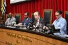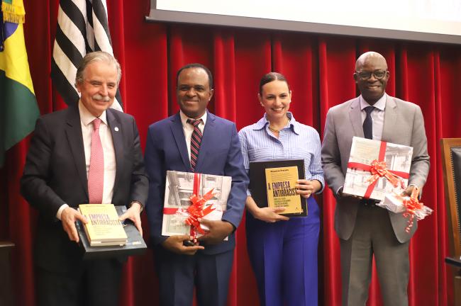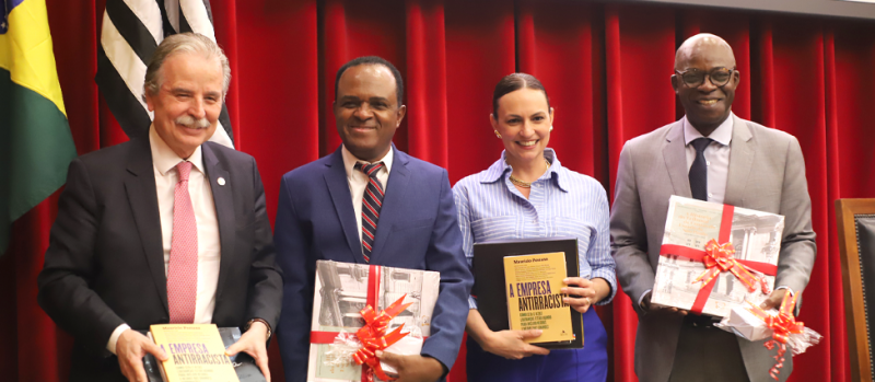 Integraram a mesa de trabalhos o Presidente do TCESP, Conselheiro Renato Martins Costa; a Procuradora-Geral do Ministério Público de Contas, Letícia Formoso Delsin Matuck Feres; e o Coordenador de Política para População Negra da Secretaria de Estado de Justiça e Cidadania, Robson Silva Ferreira.
