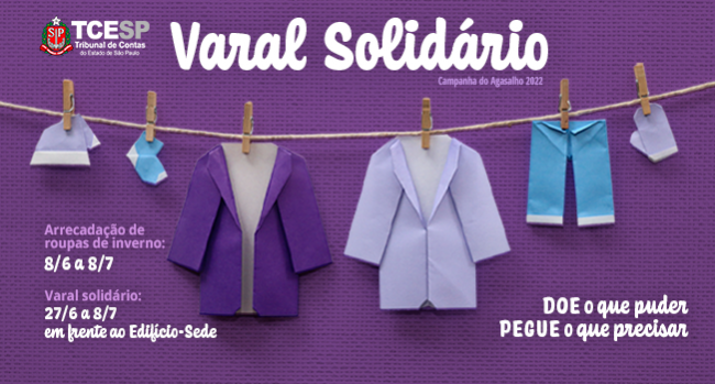 28/06/2022 – SÃO PAULO – Para ajudar quem precisa na estação mais fria do ano, o Tribunal de Contas do Estado de São Paulo (TCESP) montou, na segunda-feira (27/6), um varal solidário para doação de roupas de inverno.