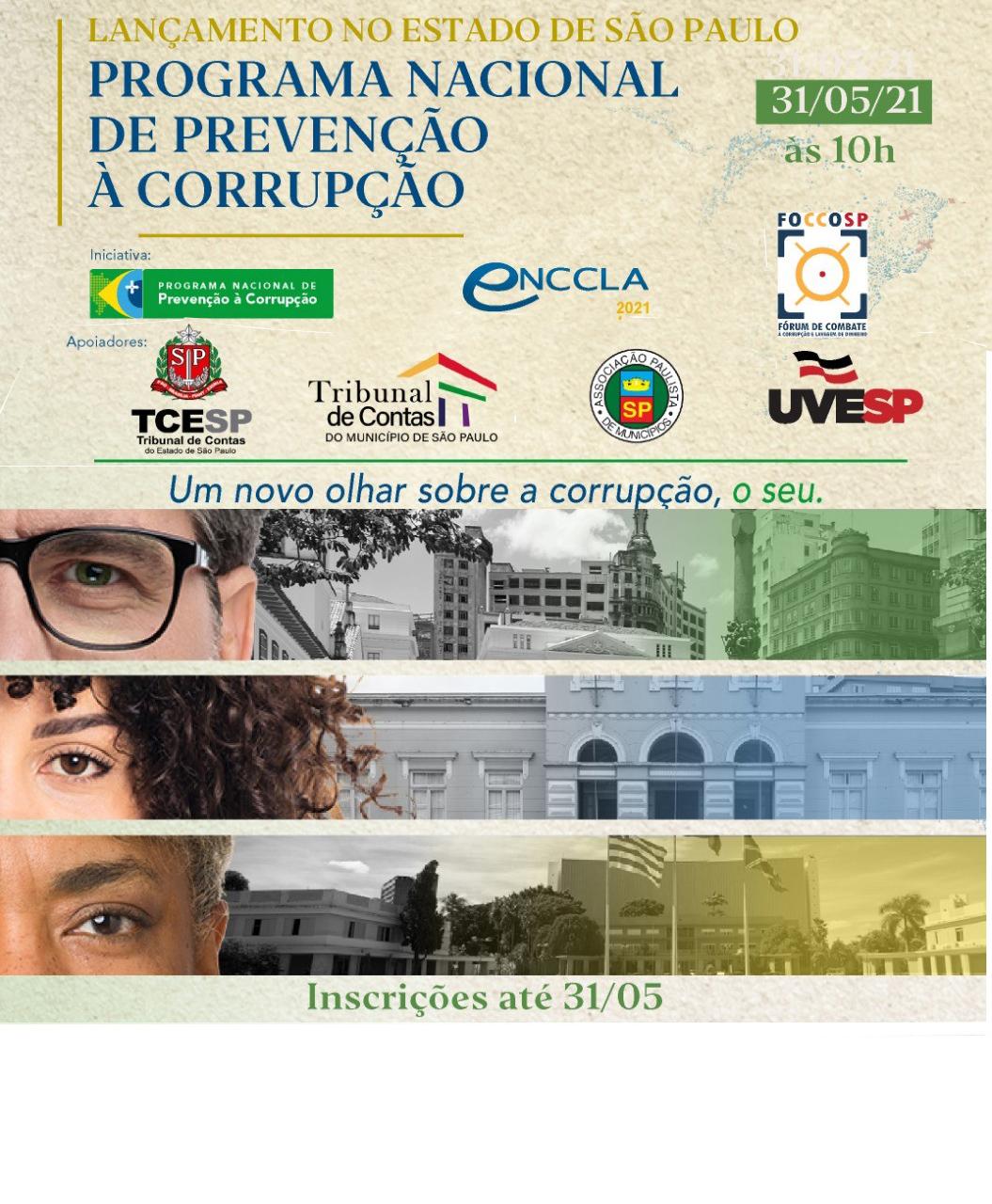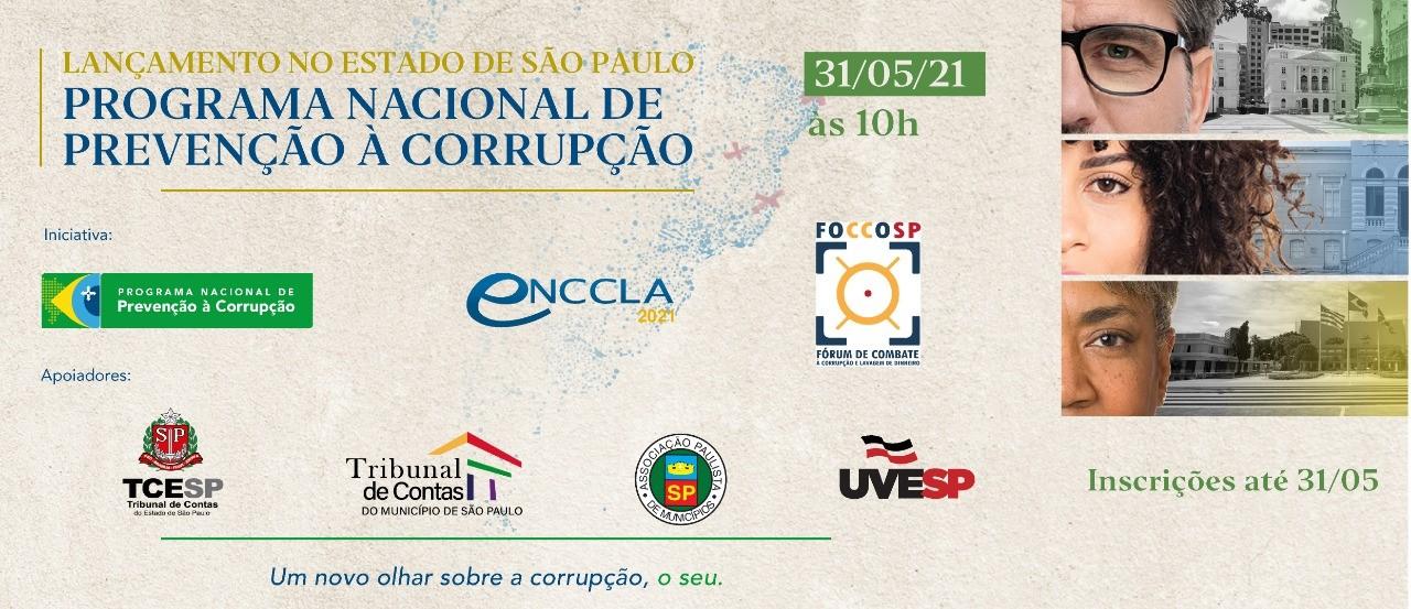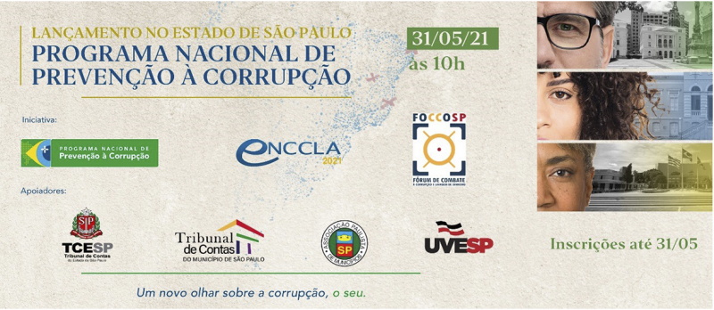 26/05/2021 – SÃO PAULO – O Tribunal de Contas do Estado de São Paulo (TCESP), participa, na segunda-feira (31/5), às 10h00, do lançamento do Programa Nacional de Prevenção à Corrupção (PNPC), iniciativa que busca apoiar as organizações brasileiras na orientação aos gestores públicos para promover a administração com elevados padrões de integridade.