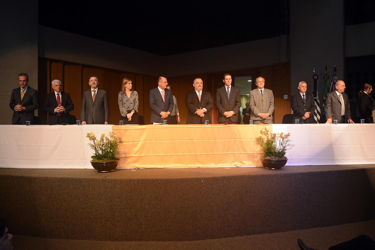 Além do Governador Geraldo Alckmin, a mesa solene contou com a presença da Presidente do Tribunal de Contas paulista, Conselheira Cristiana de Castro Moraes; do Vice-Presidente do TCE, Conselheiro Dimas Eduardo Ramalho; do Conselheiro-Corregedor e idealizador do IEGM, Conselheiro Sidney Estanislau Beraldo; do Presidente da Assembleia Legislativa (Alesp), Deputado Estadual Fernando Capez; do Vice-Governador, Márcio França e do Procurador-Geral do Ministério Público no Estado de São Paulo (MP-SP), Márcio Elias Rosa.