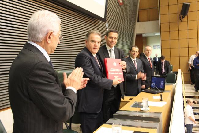 A cerimônia foi conduzida pelo Presidente da Alesp, Deputado Fernando Capez e pelos integrantes da Mesa, Deputados Enio Tatto (1º Secretário) e Edmir Chedid (2º Secretário). Na oportunidade o Secretário-Chefe da Casa Civil, Samuel Moreira, fez a entrega da Carta do Governador Geraldo Alckmin – documento que aborda o Relatório Anual das Atividades do Governo e o cenário político do Estado.