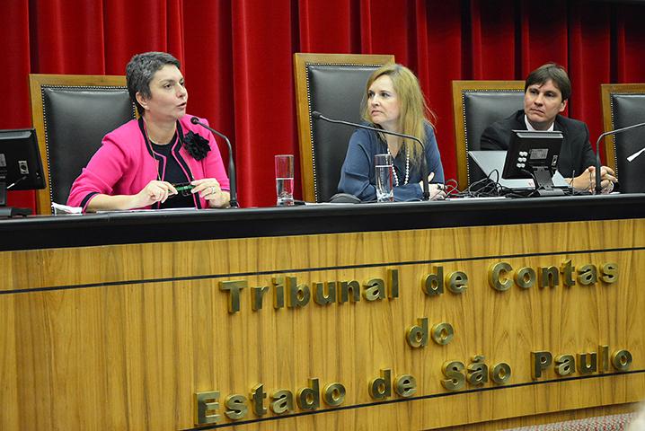 O segundo painel do dia, composto pela Conselheira do TCESP Cristiana de Castro Moraes, pela Conselheira do Tribunal de Contas do Estado do Tocantins (TCE-TO), Dóris Coutinho, e pelo Auditor de Controle Externo do Tribunal de Contas do Estado do Espírito Santo (TCE-ES), Donato Volkers Moutinho, teve como foco o financiamento da saúde pública.