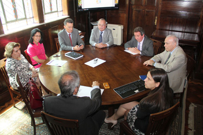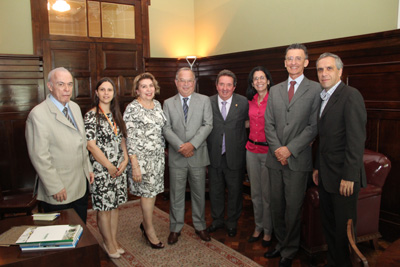 10/10/14 – SÃO PAULO – O Presidente do Tribunal de Contas do Estado de São Paulo (TCESP), Conselheiro Edgard Camargo Rodrigues, acompanhado pelo Secretário-Diretor Geral, Sérgio Ciquera Rossi, esteve na Congregação da Faculdade de Medicina da Universidade de São Paulo (FMUSP), na quinta-feira (9/10), às 10h30, em São Paulo, para participar de uma reunião protocolar com a diretoria, e que versou sobre assuntos afetos a ambas as instituições.