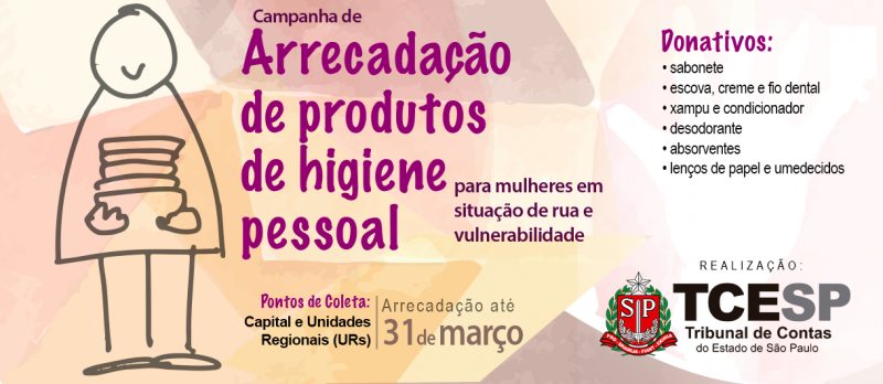 08/03/2022 – SÃO PAULO – Preocupado com o aumento do número de mulheres em situação de rua e vulnerabilidade socioeconômica desde o início da pandemia da COVID-19, o Tribunal de Contas do Estado de São Paulo (TCESP) lança nesta terça-feira (8/3), Dia Internacional da Mulher, uma campanha para arrecadar produtos de higiene pessoal feminina.