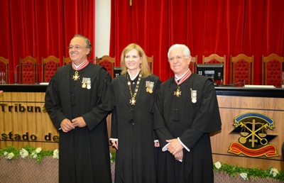 Após a cerimônia de transferência do Colar de Mérito da Justiça de Contas, passado do Conselheiro Edgard Camargo Rodrigues à nova Presidente, a Conselheira Cristiana de Castro Moraes assumiu o comando da mesa de trabalhos e falou sobre a honra de ser a primeira mulher a integrar o colegiado e a primeira servidora de carreira a ocupar o posto mais elevado do TCE em 90 anos de história da instituição.