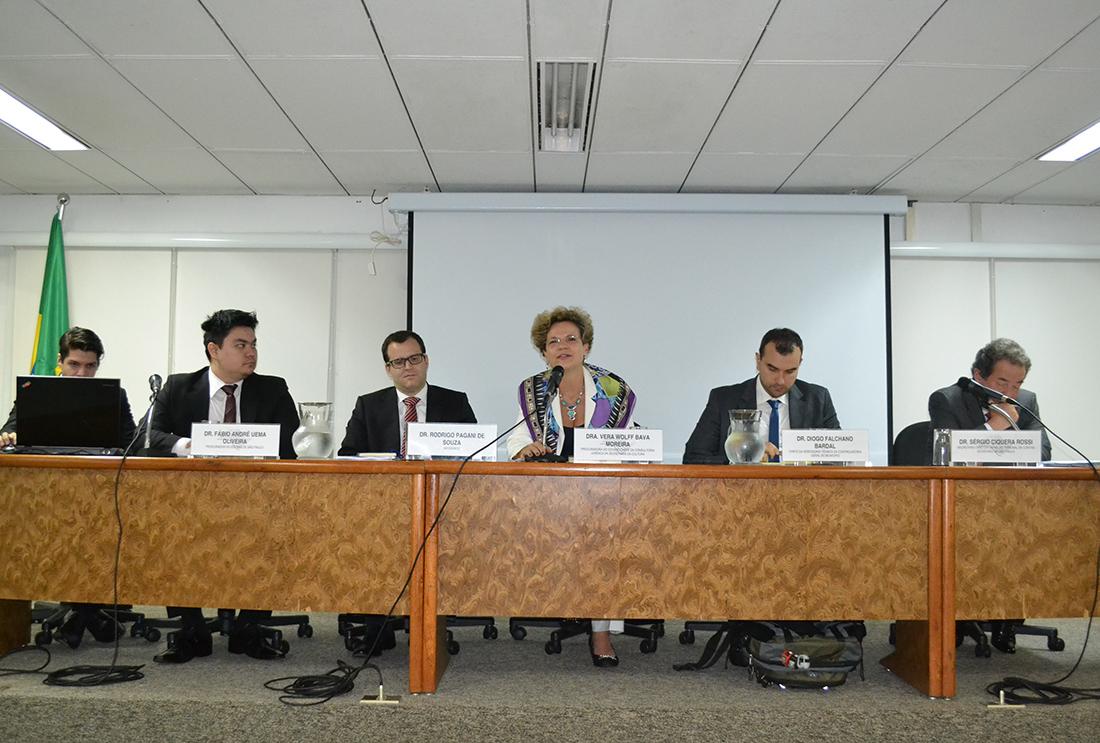 Participaram da mesa o Chefe da Assessoria Técnica da Controladoria Geral do Município, Diogo Falchano Bardal; a Procuradora do Estado Chefe da Consultoria Jurídica da Secretaria Estadual da Cultura e coordenadora dos trabalhos, Vera Wolff Bava Moreira; o advogado Rodrigo Pagani de Souza e o Procurador do Estado da Secretaria da Saúde, Fábio André Uema Oliveira.
