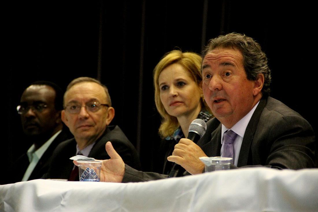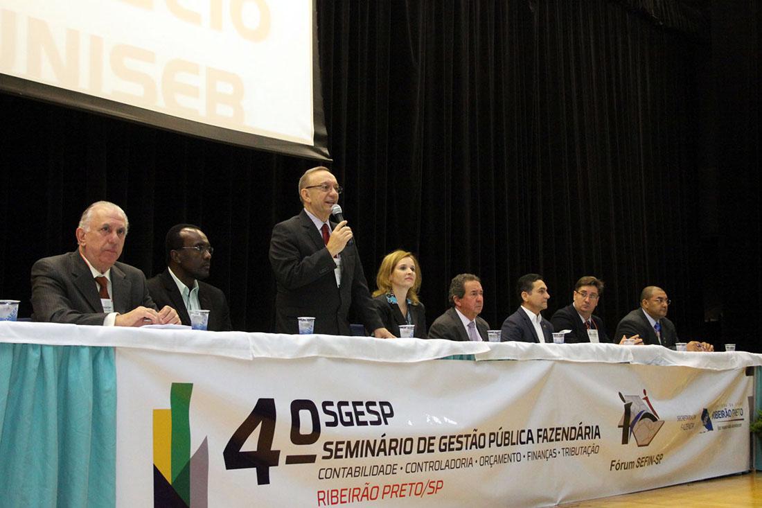A mesa de trabalhos foi coordenada pelo Secretário Municipal da Fazenda de Ribeirão Preto, Francisco Sérgio Nalini e contou com a presença do Presidente da União dos Vereadores do Estado de São Paulo (Uvesp), Sebastião Misiara; do Vereador André Luís da Silva, representando os parlamentares da cidade e região; do Vice-Presidente de Administração Financeira do Conselho Regional de Contabilidade, Gildo Freire de Araújo; do Professor Claudio Paiva, em nome da Universidade Estadual Paulista (Unesp) e dos consultores do Sebrae, Roberto Serafim de Souza e Iroá Arantes.