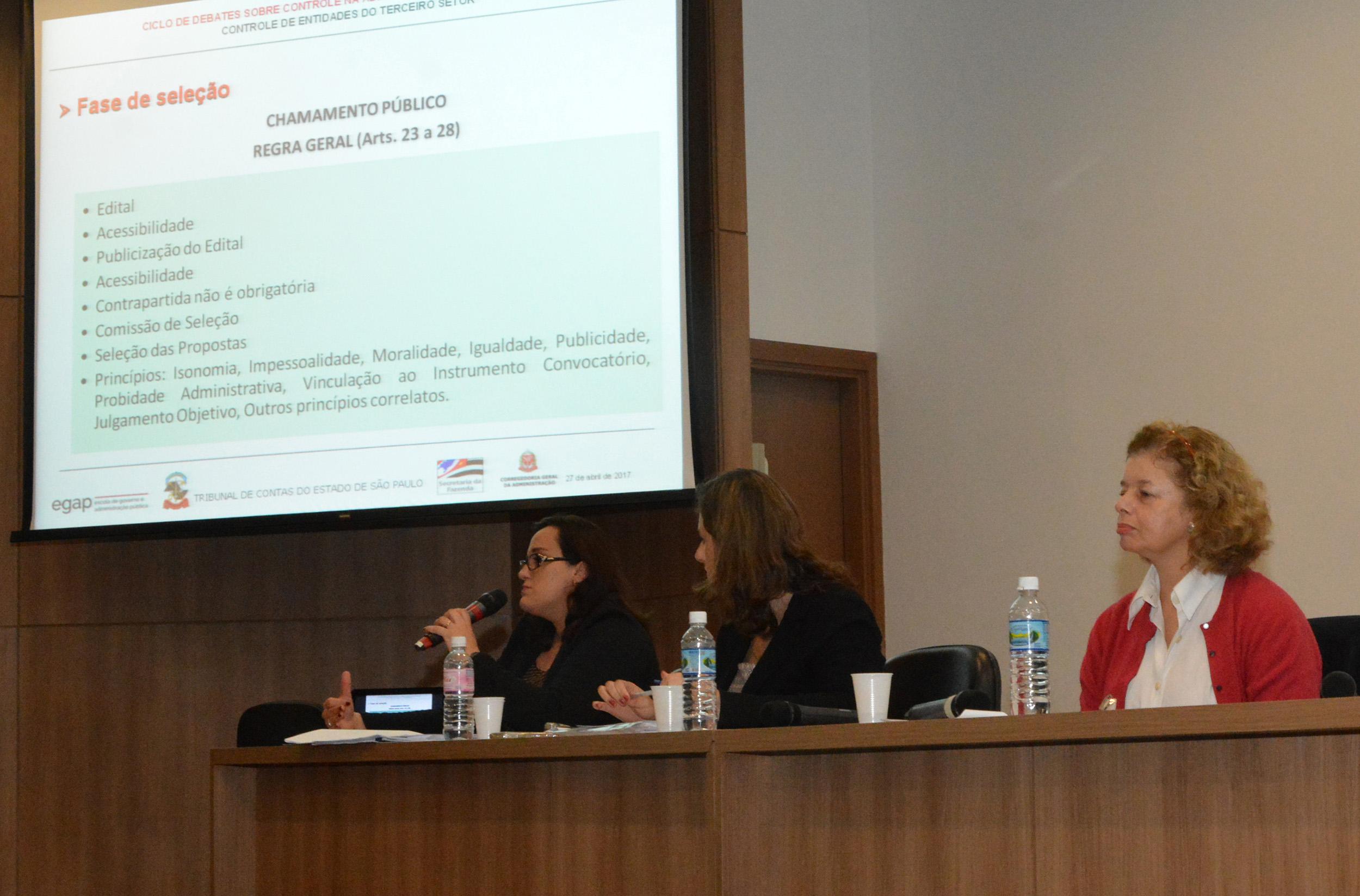 28/04/2017 – SÃO PAULO – O Tribunal de Contas do Estado de São Paulo (TCESP) participou, na quinta-feira (27/4), das 9h00 às 13h00, no auditório da Escola Fazendária da Secretaria de Estado da Fazenda, do curso ‘O controle de entidades do Terceiro Setor’ – capacitação voltada a debater os novos regramentos para repasse de recursos por parte do poder público.