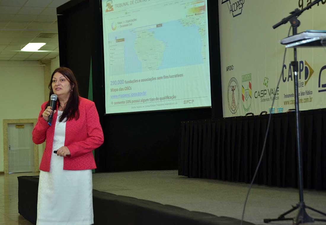 Na sequencia, às 16h00, a Coordenadora da Escola Paulista de Contas Públicas (EPCP), Silvana de Rose, proferiu a palestra com o tema ‘Os repasses ao Terceiro Setor’, onde versou sobre as regras e modalidades na elaboração de convênios, termos de colaboração e fomento, plano de trabalho, dentre outros tópicos.