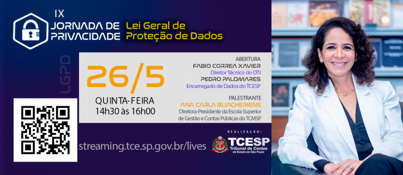 Com transmissão ao vivo pelo link http://streaming.tce.sp.gov.br/lives/, a abertura da live será por conta do Diretor do Departamento de Tecnologia da Informação (DTI), Fabio Correa Xavier, e terá participação do Encarregado de Dados do TCESP, Pedro Palomares.