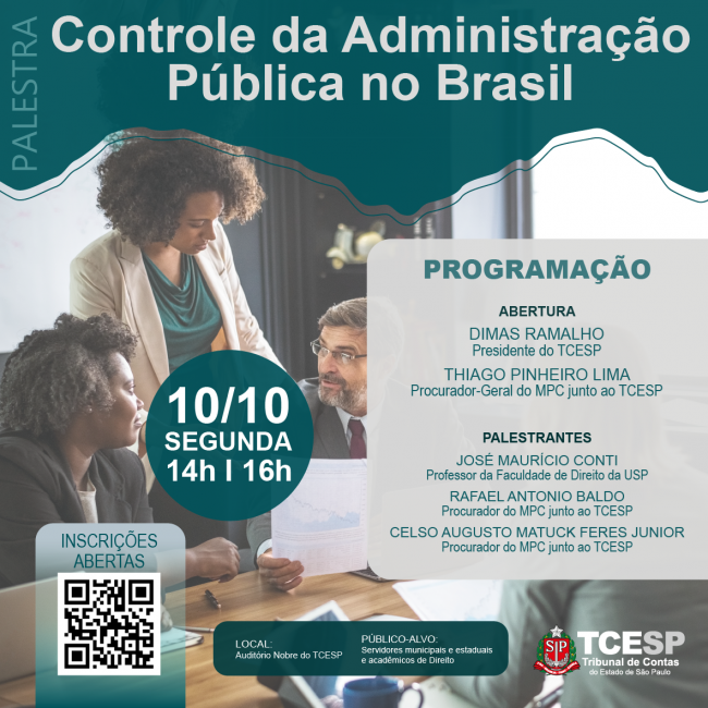 Na ocasião, será realizado, ainda, o lançamento do livro ‘Controle da Administração Pública no Brasil’, obra que conta com a participação dos Procuradores do MPC junto ao TCESP e que está disponível de forma gratuita na versão digital.