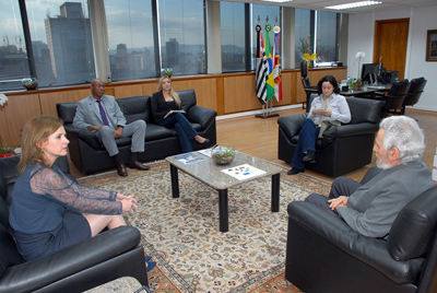 28/05/15 – SÃO PAULO – A Presidente do Tribunal de Contas do Estado de São Paulo (TCESP), Conselheira Cristiana de Castro Moraes, recebeu na quarta-feira (28/5), às 16h00, a visita do Coordenador da Rede Nossa São Paulo, Oded Grajew, que esteve acompanhado pela Coordenadora do Programa Cidades Sustentável, responsável pela área de indicadores da instituição, Clara Meyer Cabral.