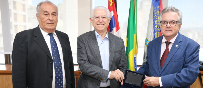 07/12/2023 – SÃO PAULO – O Presidente do Tribunal de Contas do Estado de São Paulo (TCESP), Conselheiro Sidney Beraldo, recebeu hoje (7/12), durante audiência com Pascoal Barreti, Reitor da Universidade Estadual Paulista, homenagem pela “dedicação” e “importante papel desempenhado para a expansão da Unesp”, sobretudo durante o período em que foi Presidente da Assembleia Legislativa, entre 2003 e 2005.