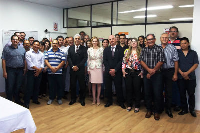 Acompanhada pelo Diretor de Supervisão da Fiscalização II, Alexandre Teixeira Carsola, e recepcionada pelo Diretor Regional José Paulo Nardone, a Presidente visitou as instalações da regional, conversou com servidores e agentes de fiscalização, e consignou sua satisfação com a qualidade técnica e eficiência dos serviços prestados na Unidade Regional.