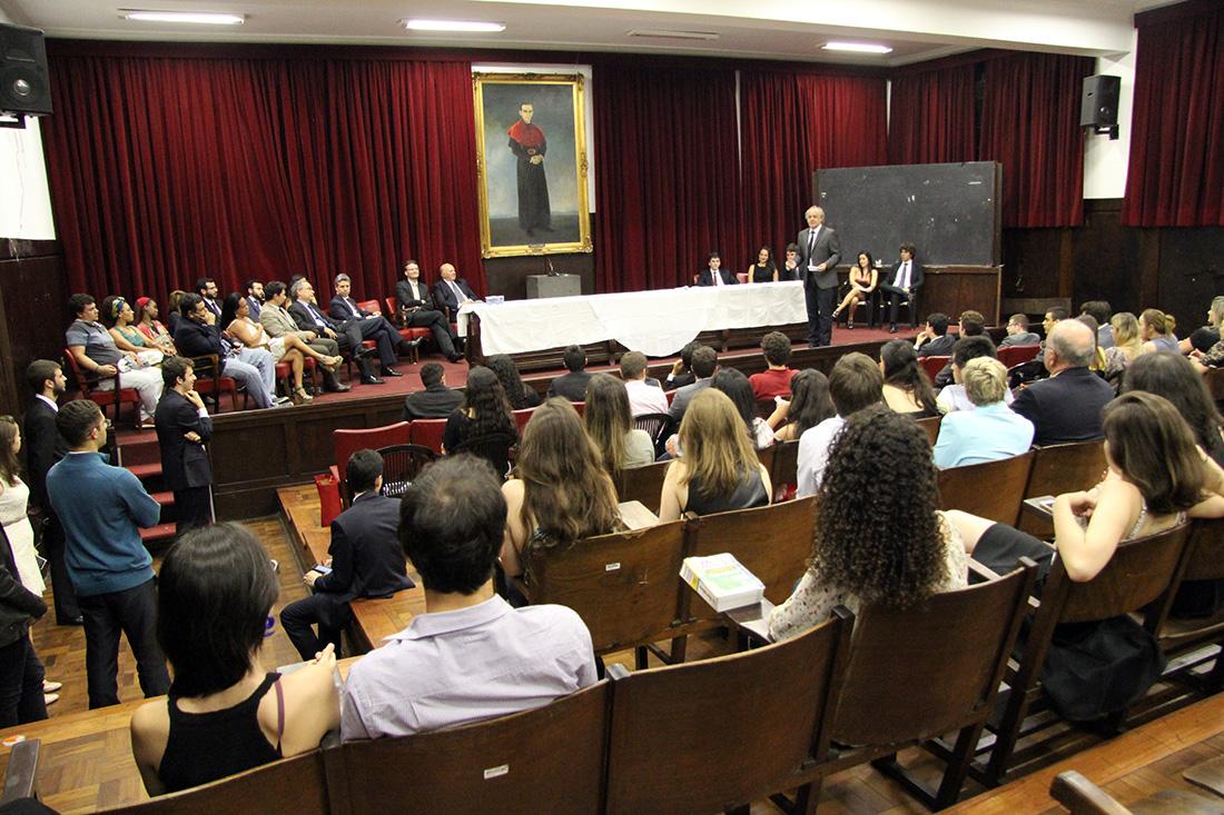 A solenidade, que contou com a presença de 5 (seis) ex-Presidentes do Centro Acadêmico - Dimas Eduardo Ramalho (1978), Gustavo Ungaro (1996), Marco Aurélio Martorelli (1992), Caio Miranda Carneiro (2006), Paulo Henrique Rodrigues Pereira (2008) - e por Julia Cruz, que participou da Diretoria na gestão de 2013.