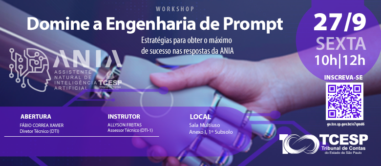 Para responder estas e outras dúvidas, o TCE realiza, na sexta-feira (24/9), das 10h00 às 12h00, na Sala Multiuso, o workshop ‘Domine a Engenharia de Prompt: Estratégias para obter o máximo de sucesso nas respostas da ANIA’.