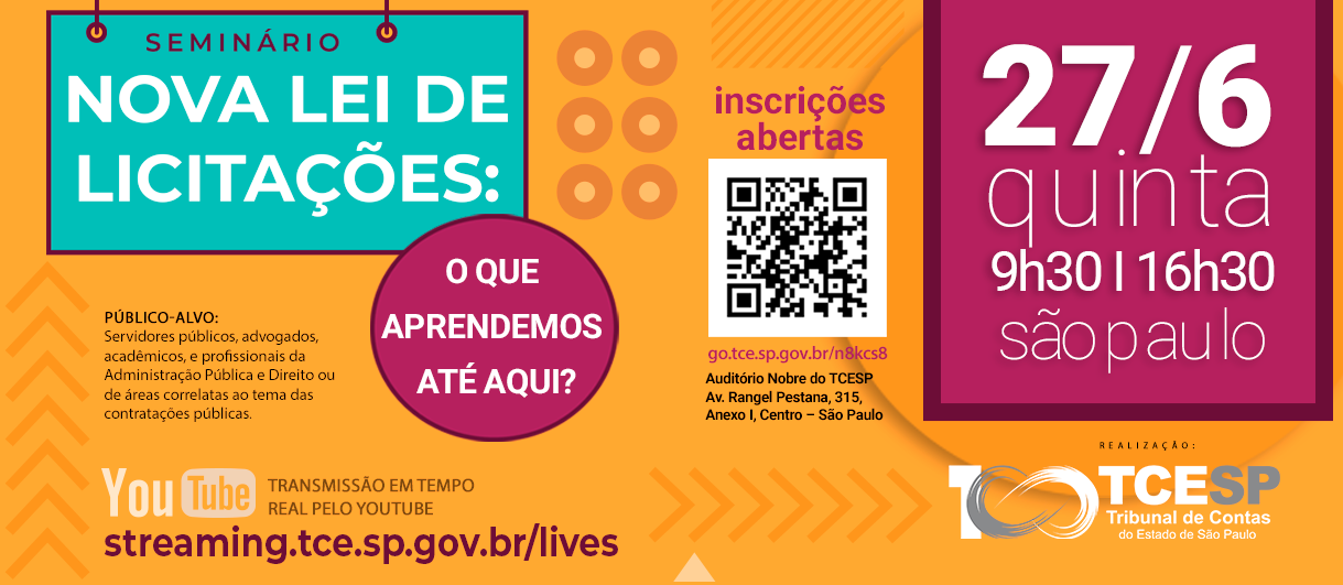 Link de inscrições: https://go.tce.sp.gov.br/nllc2706