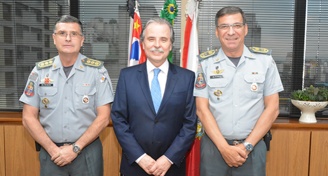 23/02/2018 - SÃO PAULO - O Presidente do Tribunal de Contas do Estado (TCESP), Conselheiro Renato Martins Costa, recebeu, na quinta-feira (22/2), às 16h30, a visita do Comandante Geral e do Subcomandante da Polícia Militar do Estado de São Paulo, Coronel PM Nivaldo Cesar Restivo e Coronel PM Mauro Cezar dos Santos Ricciarelli...