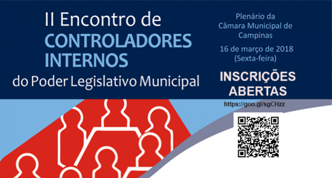 01/03/2018 - SÃO PAULO - O Tribunal de Contas do Estado de São Paulo (TCESP),r epresentado pelo Diretor Técnico Paulo Massaru Uesugi Sugiura, Assessor da Secretaria-Diretoria Geral (SDG), participa, em Campinas, no dia 16 de março, da programação do II Encontro de Controladores Internos do Poder Legislativo Municipal. Promovido...