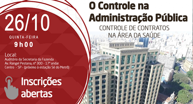 Clique para fazer a sua inscrição 25/10/17- SÃO PAULO- O Tribunal de Contas do Estado de São Paulo (TCESP) participa, amanhã (26/10), das 9h00 às 13h00, no auditório da Secretaria da Fazenda do Estado de São Paulo, do sétimo encontro de um ciclo de debates sobre controle na administração pública. O evento será transmitido ‘ao...